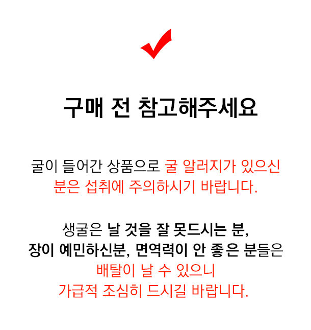 | 내용량 | 생굴겉절이 1kg / 2kg |